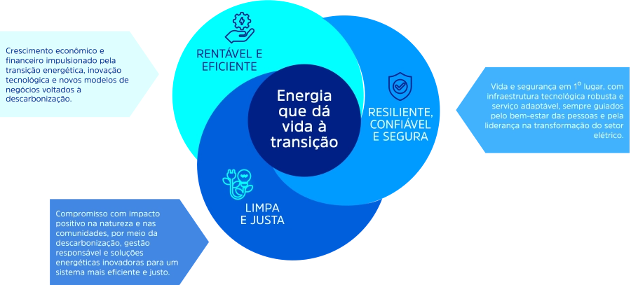 Garantir uma infraestrutura elétrica robusta e resiliente diante dos desafios da transição energética e dos eventos climáticos extremos, por meio de novas tecnologias, aumento contínuo da excelência operacional e da geração de impacto social e ambiental positivo.